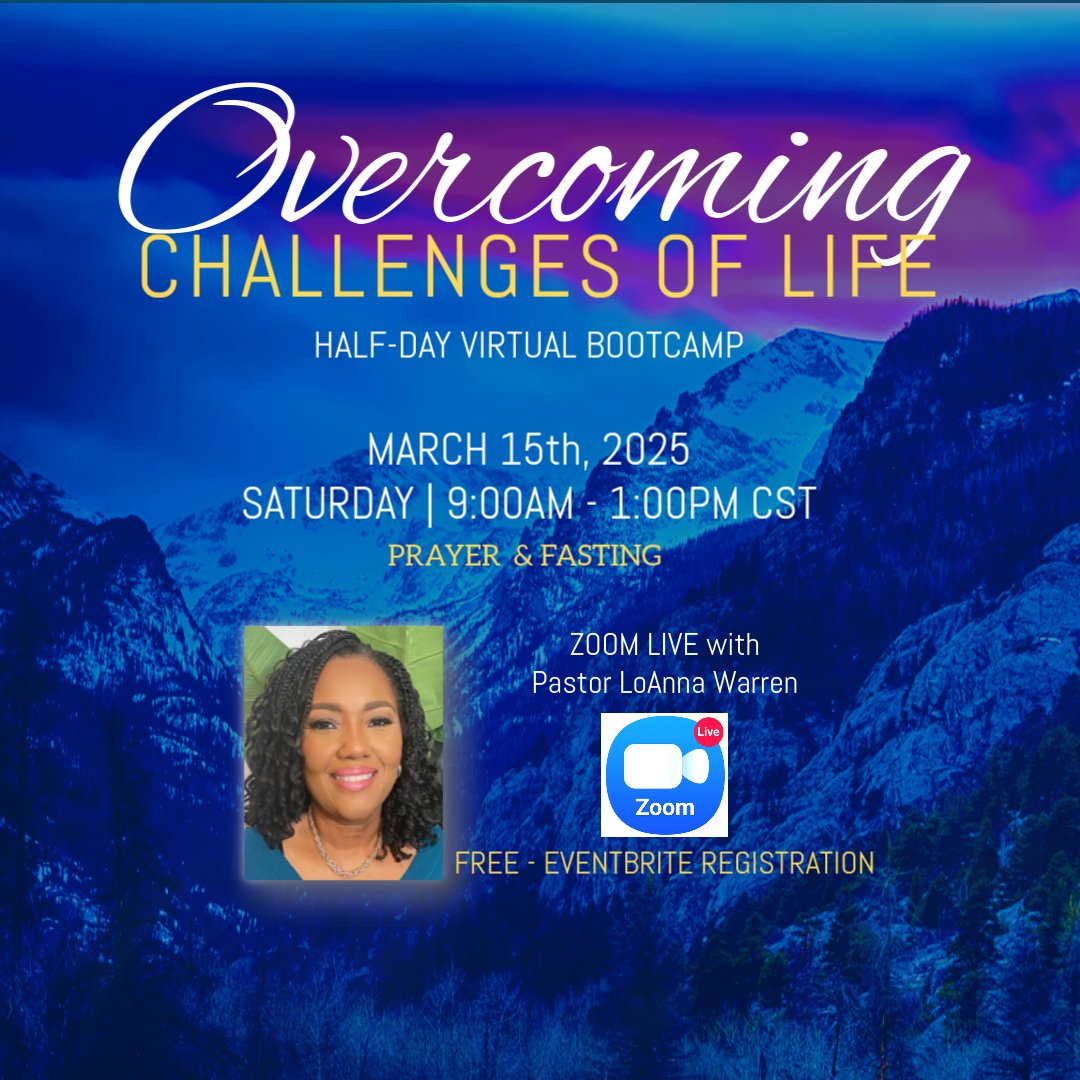 Are you ready to operate from a kingdom perspective and rise above life challenges? Join this virtual interactive class designed to reboot and infuse your prayers and meditation with the word of God. Pastor LoAnna Warren will guide you through declarations and activations to transform your mind and spirit. Sign up now!
